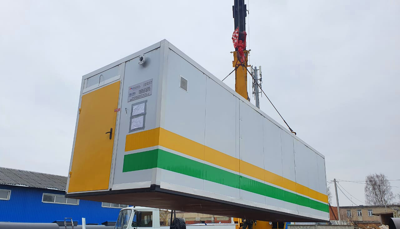 Станция очистки бытовых сточных вод "ТВЕРЬ-15БМ" представляет из себя утепленное здание из блок-модулей, установленных на фундаменте, со всем технологическим оборудованием внутри.